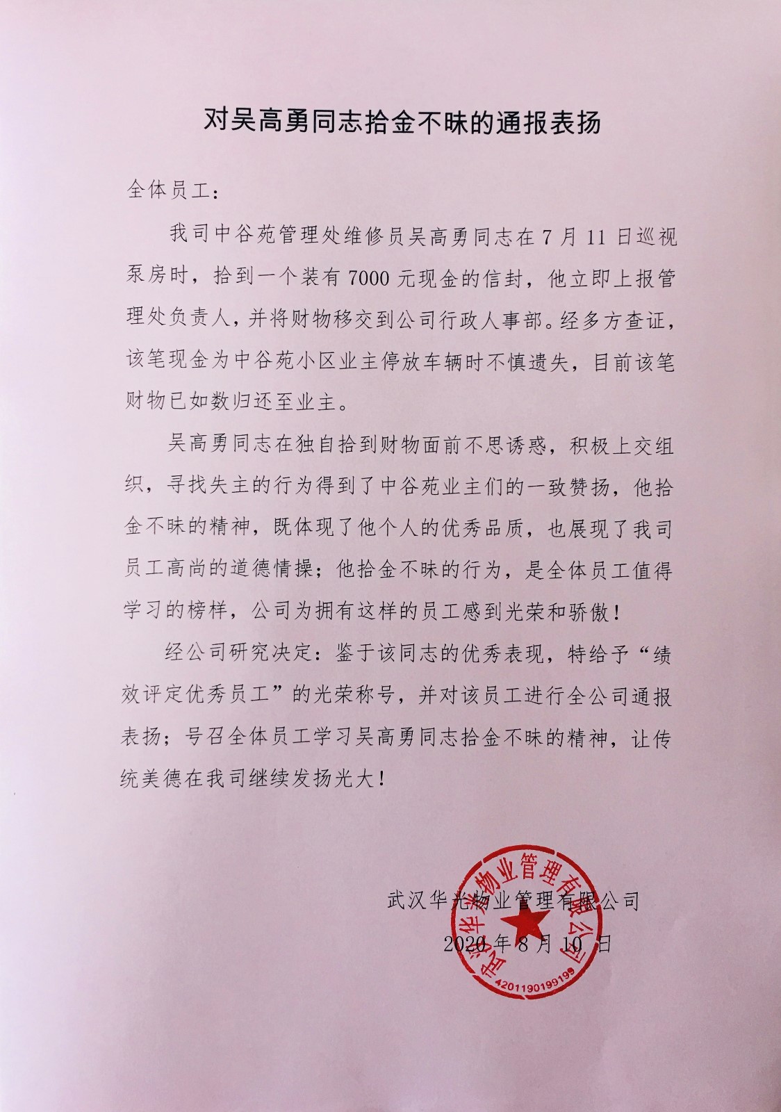 對(duì)吳高勇同志拾金不昧的通報(bào)表?yè)P(yáng)...[詳情]
